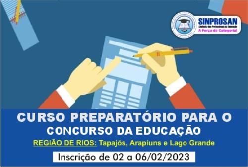 O Curso Preparatório é Destinado EXCLUSIVAMENTE para os associados do SINPROSAN das Regiões do Lago Grande, Tapajós e Arapiuns com periodicidade de 01 (um) Aulão Intensivo por mês, sendo aos domingos com duração de 8h (8h - 12h e 13h - 17h).